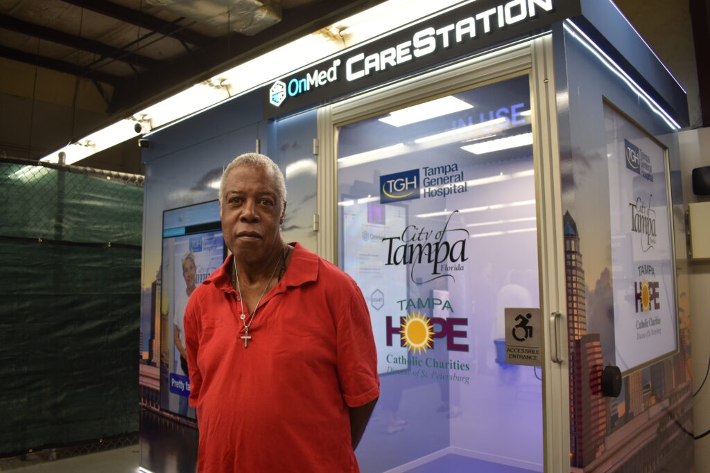 Share Twitter Facebook LinkedIn Email Tampa Hope is the first homeless facility to receive an OnMed CareStation, an 8-by-11-foot pod quipped with thermal imaging, medical devices to take vitals and a camera to speak with teleheath providers.Read More