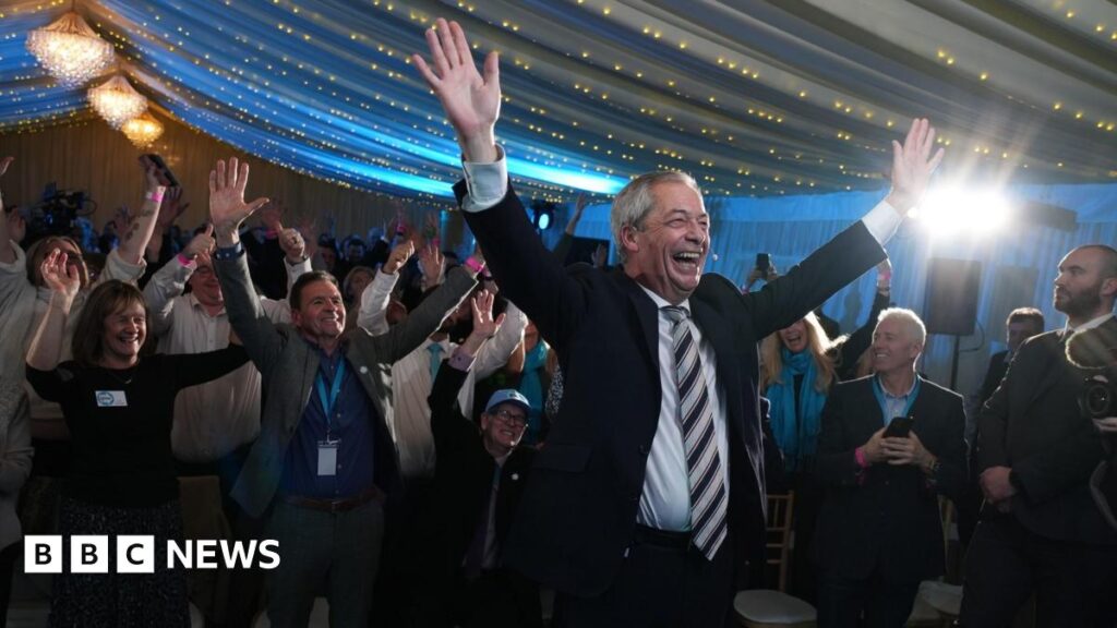 Share Twitter Facebook LinkedIn Email Nigel Farage holds a rally in North West Essex as his party targets Kemi Badenoch’s seat.Read More