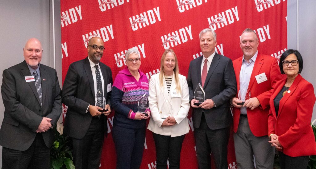 Share Twitter Facebook LinkedIn Email The University of Indianapolis School of Business honored five alumni who have excelled in the business field at this year’s Outstanding Business Alumni Award Celebration. Read on to learn more about each of these outstanding Greyhounds!Read More