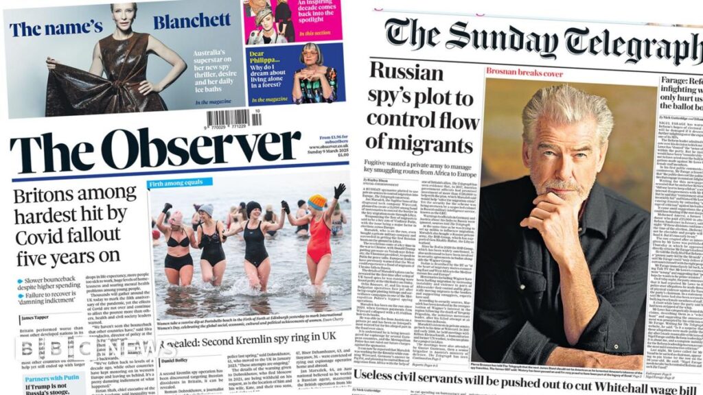 Share Twitter Facebook LinkedIn Email A mix of stories lead Sunday’s front pages, including on immigration and five years on since the start of the pandemic.Read More