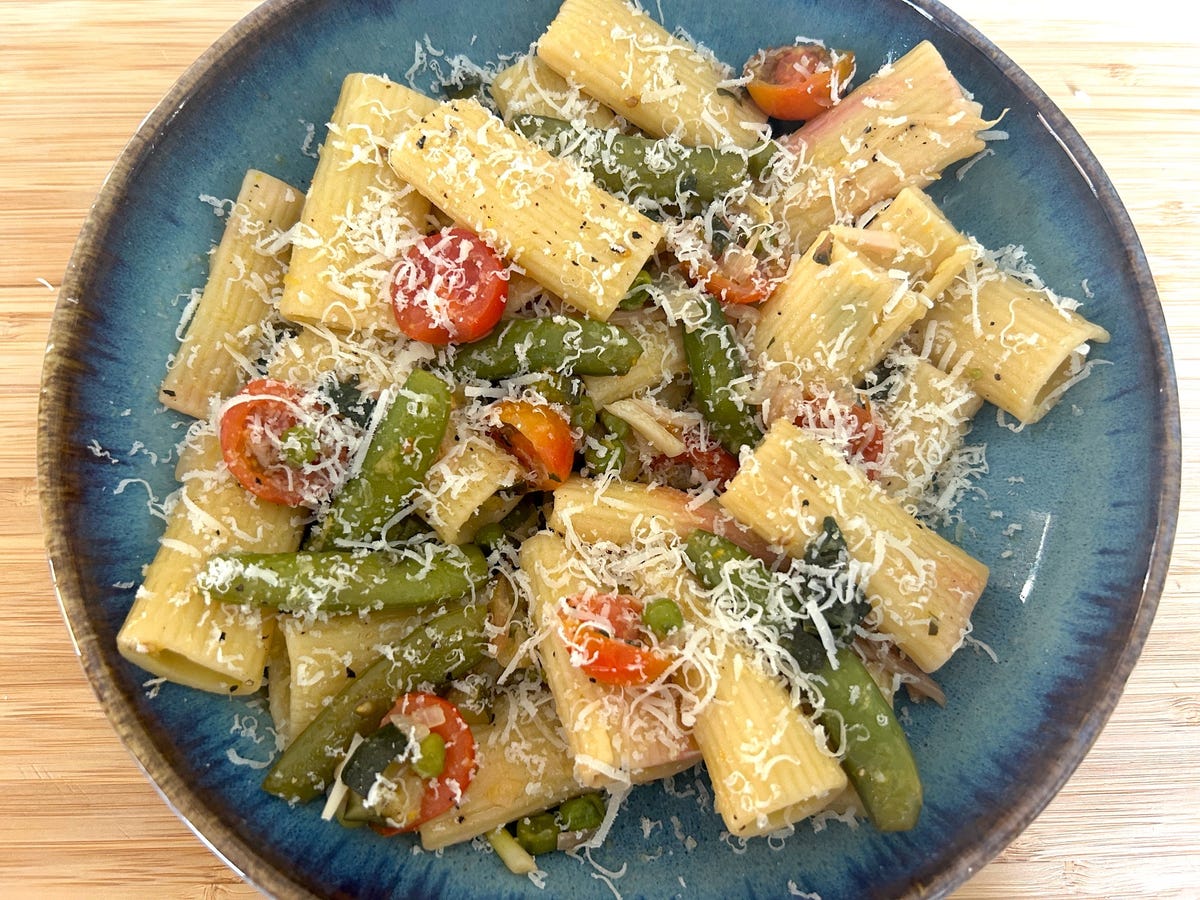 Share Twitter Facebook LinkedIn Email Meghan Markle’s delicious spring garden pasta salad features seven different veggies, including cherry tomatoes, snap peas, and zucchini.Read More