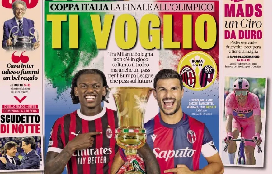 Share Twitter Facebook LinkedIn Email La Gazzetta dello SportCoppa Italia: Final at the OlimpicoI want youMilan and Bologna are at stake not only for the trophy but also for the Europa League pass, which has weight for the future.Moratti …Read More
