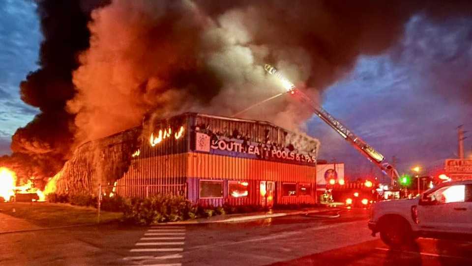 Share Twitter Facebook LinkedIn Email Firefighters responded to the fire at South East Pools and Spas just after 5:30 a.m.Read More