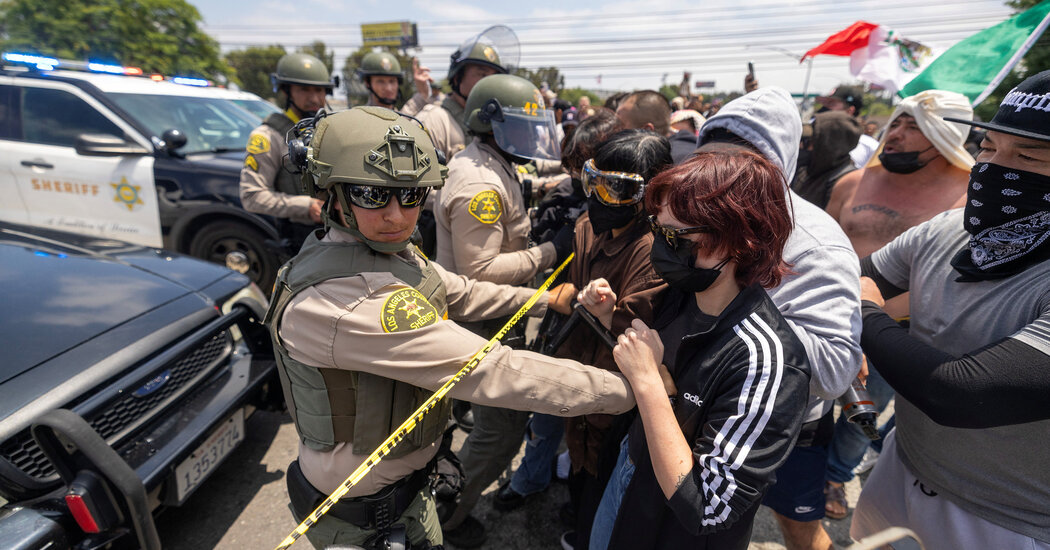 Share Twitter Facebook LinkedIn Email President Trump on Saturday ordered at least 2,000 National Guard troops to California after demonstrations against a series of raids on workplaces.Read More