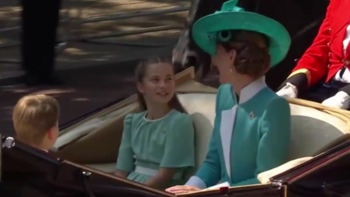 The Princess of Wales and Princess Charlotte shared a sweet moment during Trooping the Colour in London on Saturday, 14 June, to mark the King’s official birthday. Accompanied by Prince George and Prince Louis, the mother and daughter smiled at one another as they rode together in a carriage. The appearance of the Prince and Princess of Wales’ children sparked cheering from royal fans when they were spotted travelling down the Mall with their mother. Kate took her place next to the King and Queen on the dais to watch the spectacle, in her role as Colonel of the Irish Guards – a position she was unable to take up last year because she was receiving cancer treatment, and instead watched the ceremony with her children.Read More