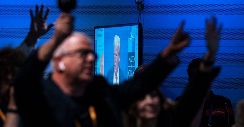 Share Twitter Facebook LinkedIn Email The president’s trip to NATO offered a glimpse into how he sees himself — and wants to be seen — on the world stage.Read More