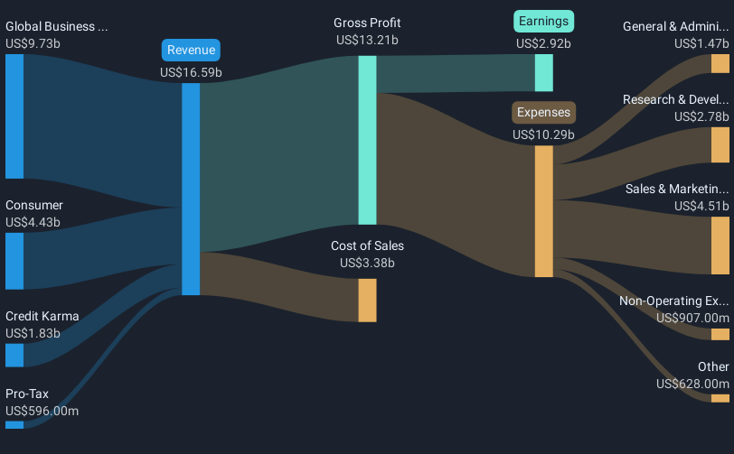Intuit (NasdaqGS:INTU) recently launched a suite of AI agents aimed at optimizing business operations, integrating these advancements into their QuickBooks platform to offer real-time insights and efficiency gains. This technological innovation, paired with favorable customer feedback, has likely supported Intuit’s stock price, reflecting a significant 26% rise over the past quarter. This appreciation occurred amid an overall positive performance in tech stocks, as the Nasdaq Composite and…Read More