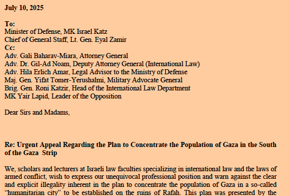 Share Twitter Facebook LinkedIn Email Israeli international law scholars send urgent letter to Israel’s Minister of Defense, the IDF Chief of Staff, the Attorney General.Read More