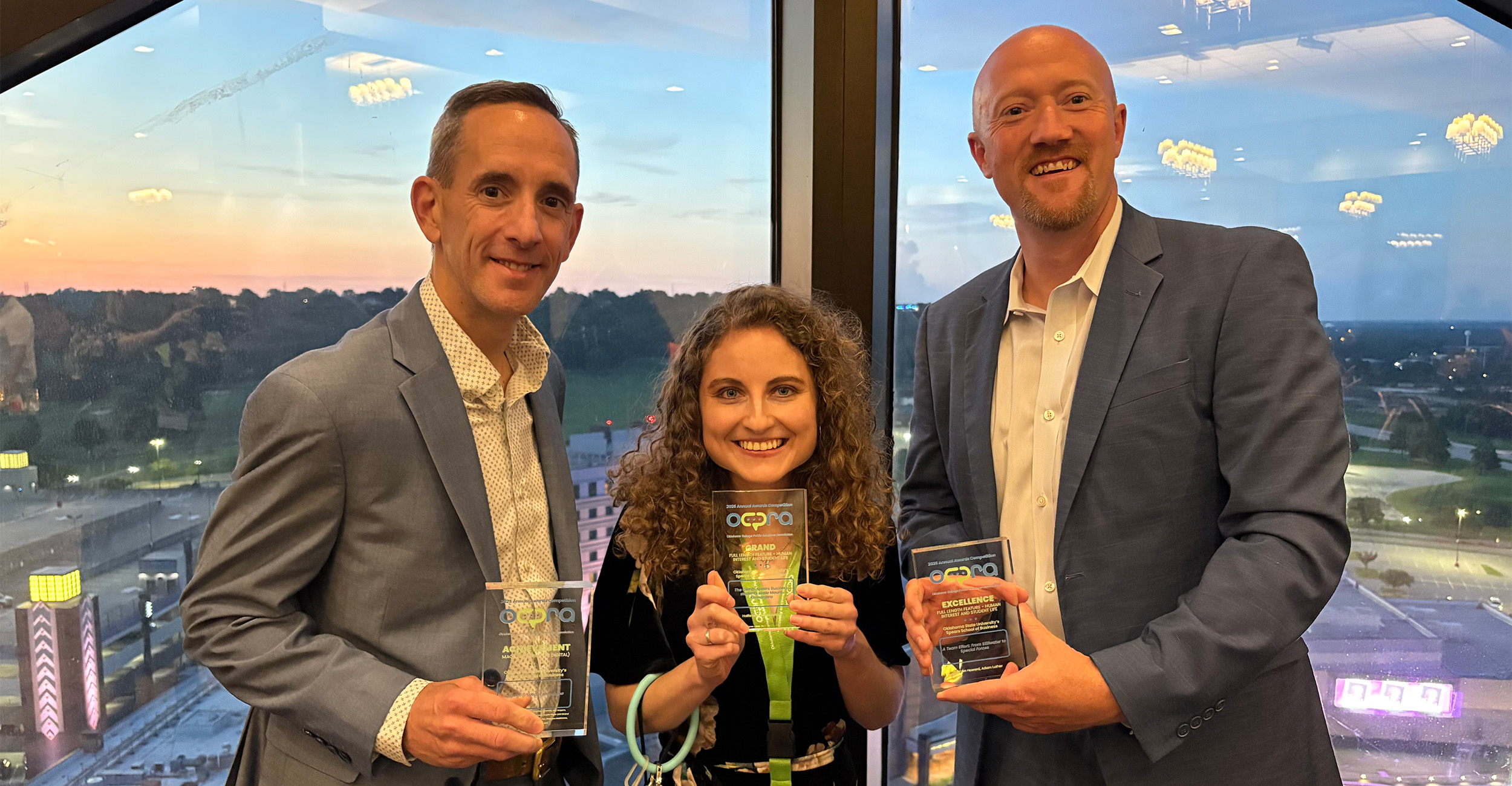 Share Twitter Facebook LinkedIn Email Led by Hallie Hart’s feature-writing victory, the Spears Business marketing and communications department took home a trio of honors at the Oklahoma College Public Relations Association Awards Banquet.Read More