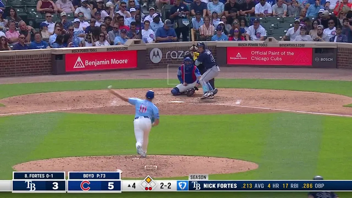 Share Twitter Facebook LinkedIn Email Nick Fortes bloops an RBI single to center field, trimming the Rays’ deficit to 6-4 in the 4th inningRead More