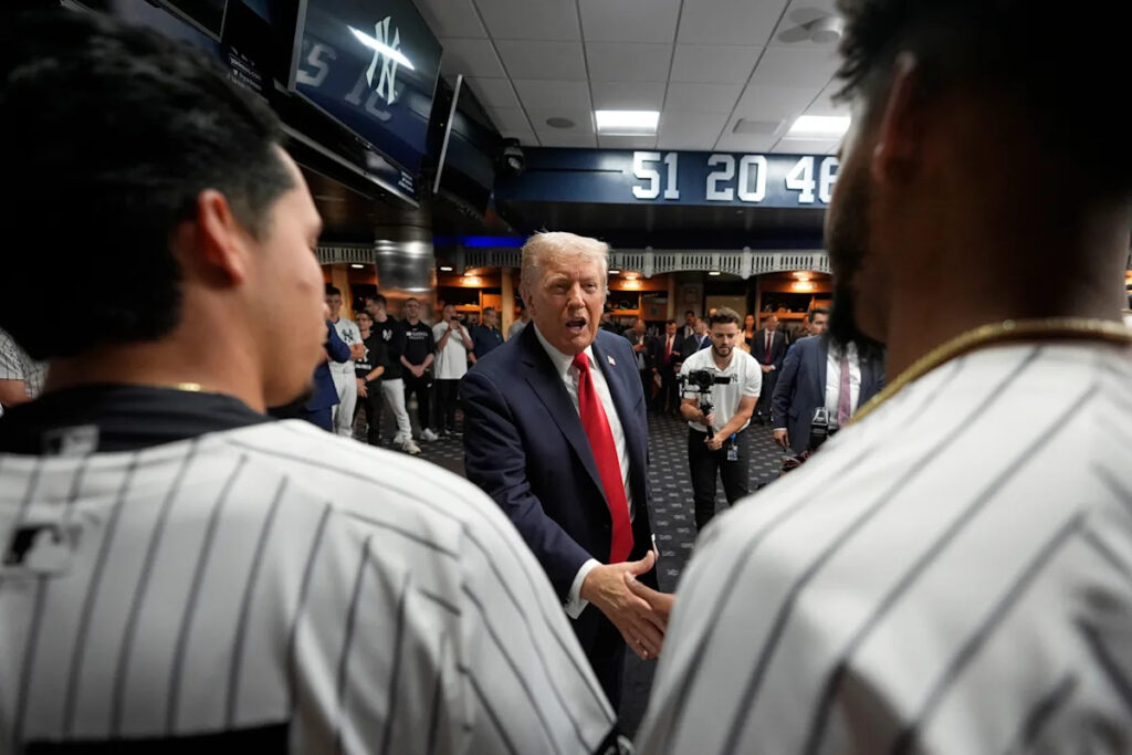 Share Twitter Facebook LinkedIn Email Trump addressed the Yankees players in the clubhouse ahead of the game.Read More