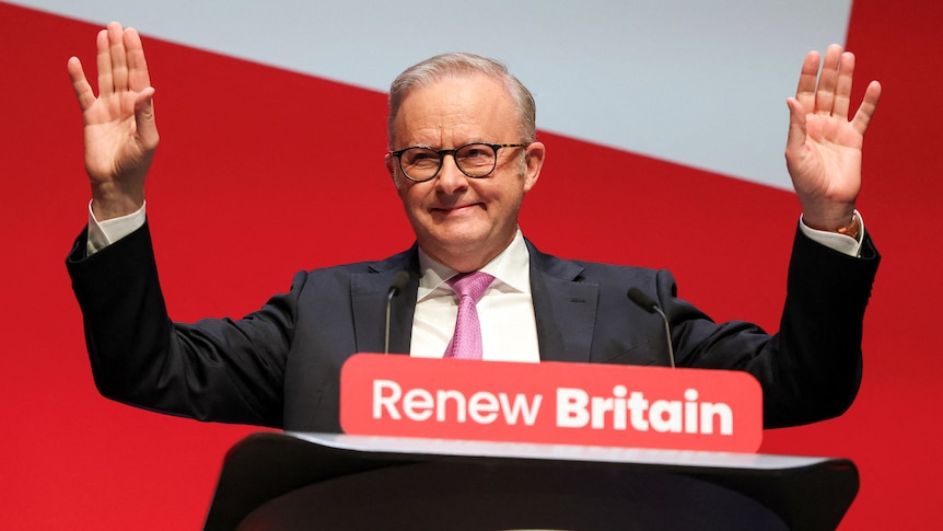 Share Twitter Facebook LinkedIn Email Anthony Albanese and British counterpart Sir Keir Starmer embraced on stage in Liverpool, northern England, where rumours have been swirling about a leadership challenge to the UK PM.Read More