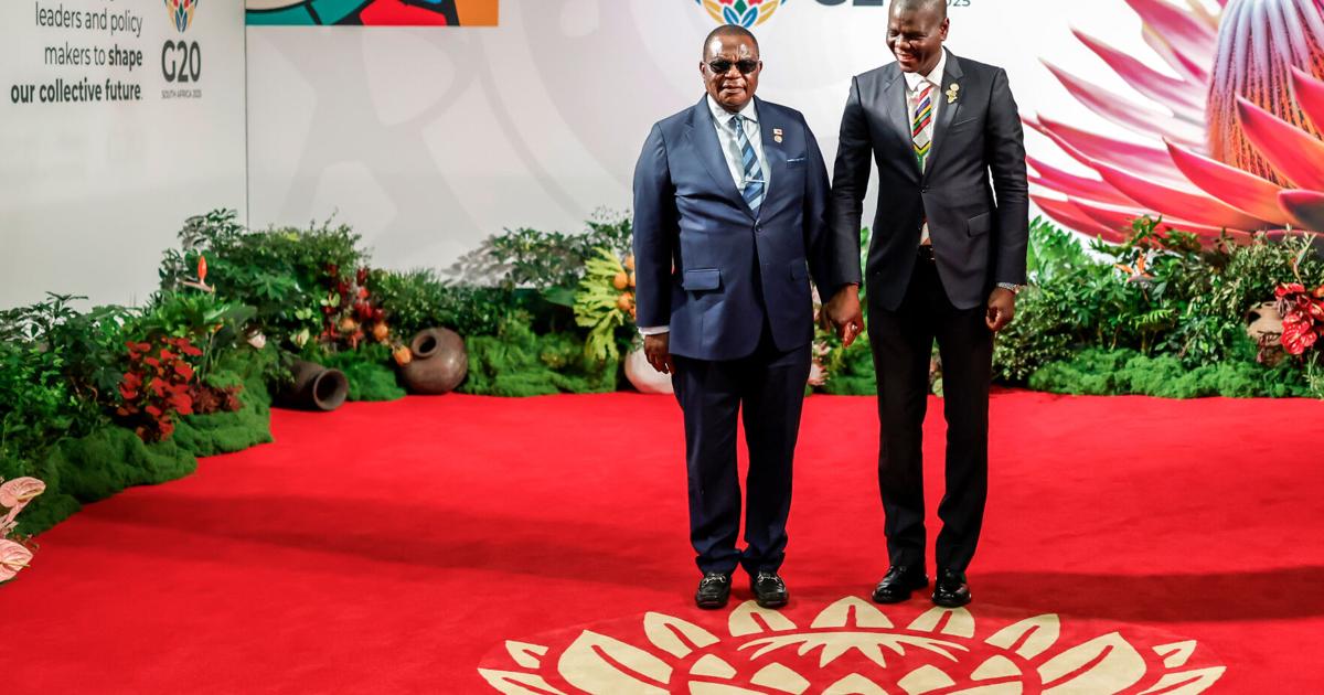 Share Twitter Facebook LinkedIn Email South Africa’s Minister of International Relations and Cooperation Ronald Lamola, right, greets Zimbabwe’s Vice President Constantino Chiwenga as he arrives arrives for the second day of the G20 Leaders’ SummitRead More