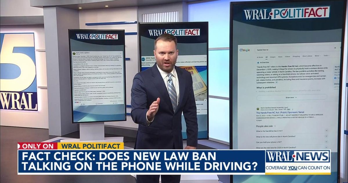 Share Twitter Facebook LinkedIn Email The Facebook page — called “North Carolina Legislature” — posted that “Effective today, December 1, 2025, North Carolina has a new ‘Hands-Free NC Act’ that prohibits the use of wireless communication devices while driving.”Read More