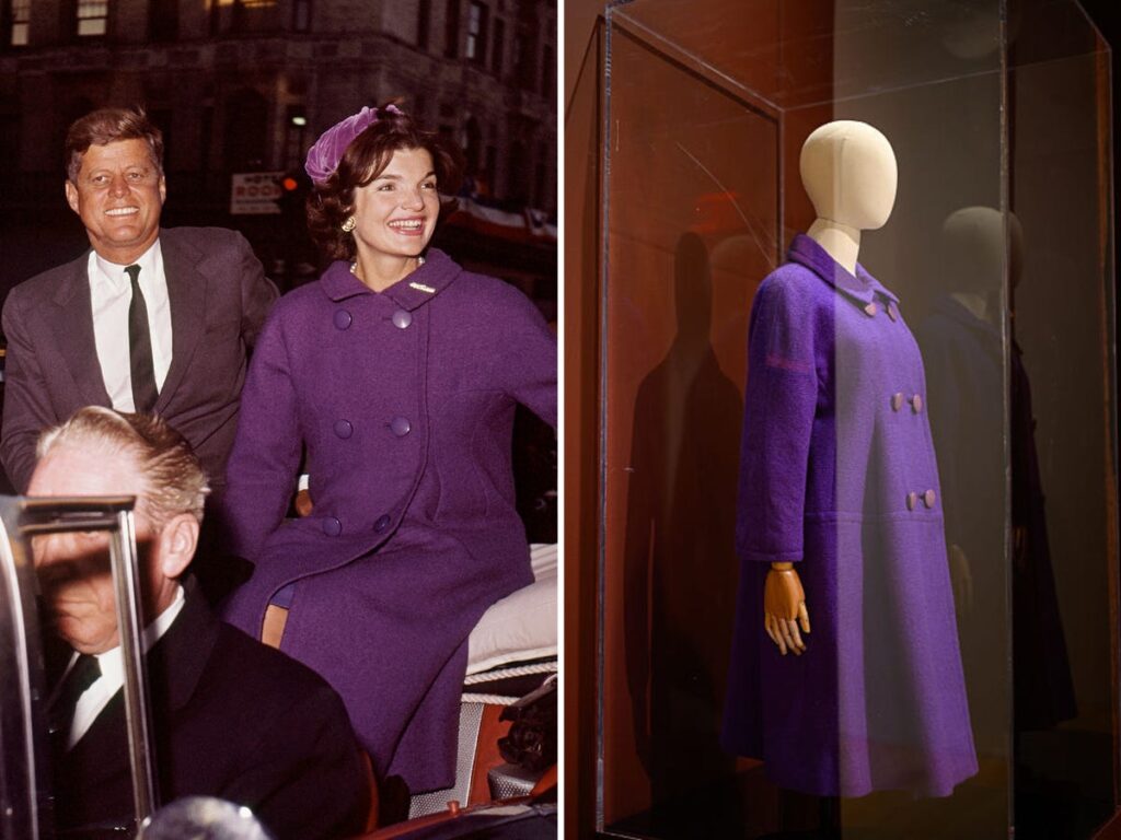 Share Twitter Facebook LinkedIn Email Jacqueline Kennedy Onassis wore a purple maternity coat on election night in 1960. Sotheby’s estimated the coat’s value at between $6,000 and $8,000.Read More