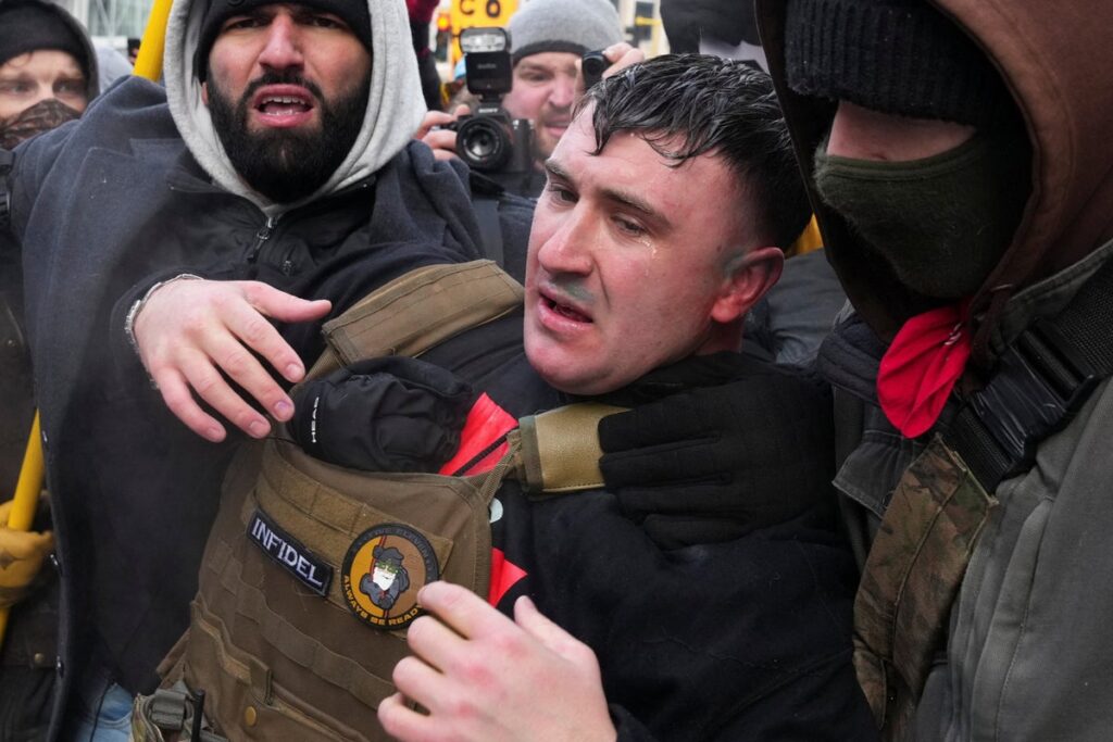 Share Twitter Facebook LinkedIn Email Counter protesters outnumber Jake Lang’s ‘CRUSADER MARCH’ and toss water balloons and snowballsRead More
