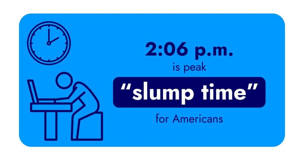 Share Twitter Facebook LinkedIn Email Americans hit their daily energy low at 2:06 p.m., according to new survey data. A survey examining the energy levels and lifestyle goals of 2,000 people saw that on average,Read More
