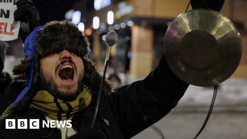Share Twitter Facebook LinkedIn Email Protesters spent the evening banging drums and chanting outside the hotel where immigration official Gregory Bovino is reportedly staying, the BBC’s Tom Bateman reports.Read More