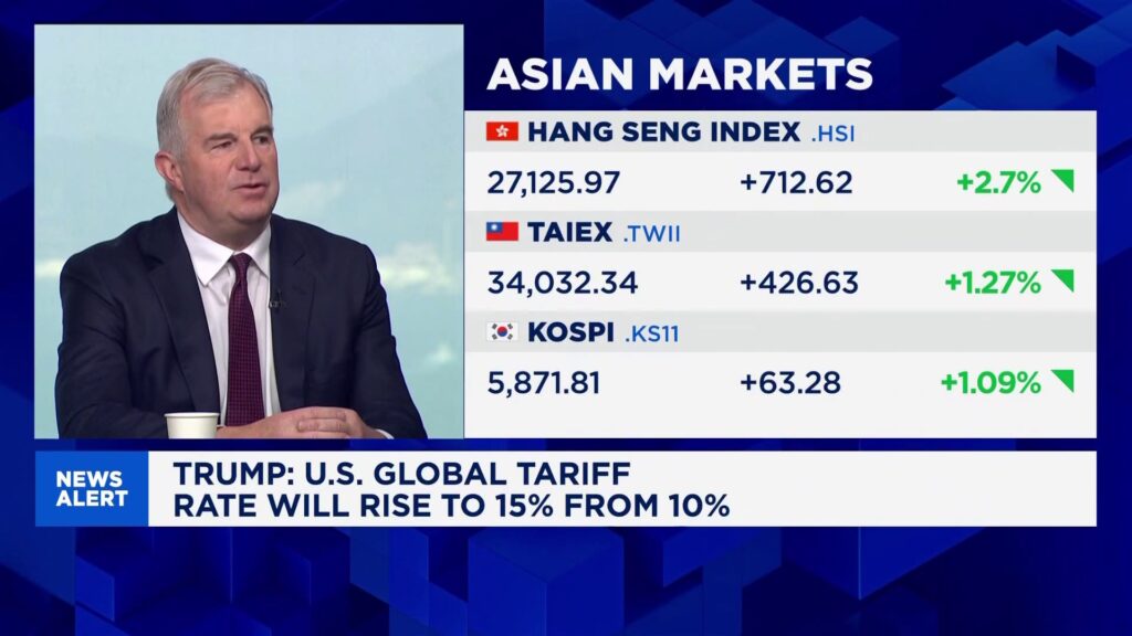 Sean Taylor, CIO and portfolio manager at Matthews Asia, discusses the uncertainty in the markets following President Trump’s announcement of new 15% tariffs under section 122 of the Trade Act. He also says a US markets dip due to tariffs, fiscal, and private credit concerns could be a buying opportunity and that Chinese defensive stocks might outperform in that environment.Read More