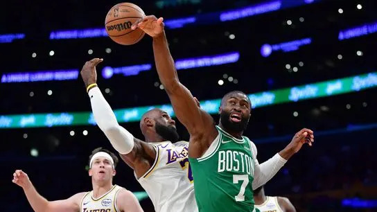 Share Twitter Facebook LinkedIn Email The Celtics flatten the Lakers 111-89 and spoil Pat Riley’s statue unveiling.Read More