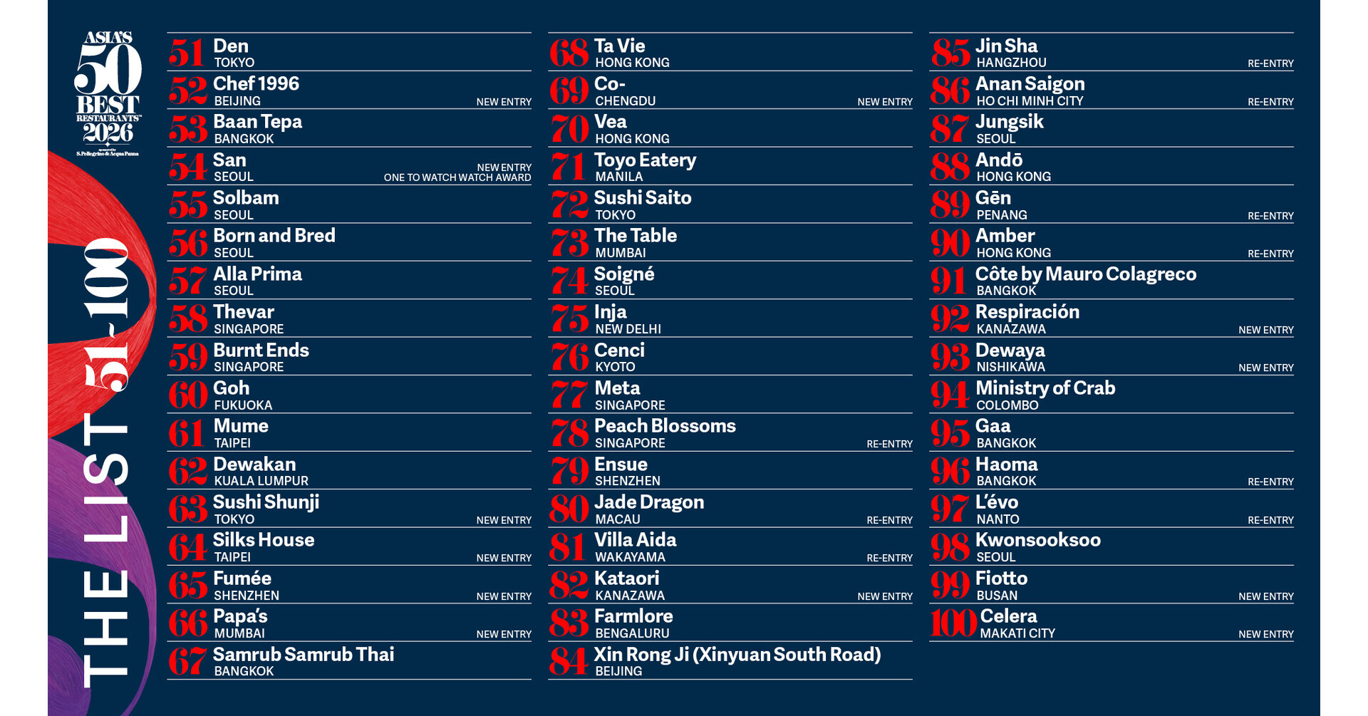 Share Twitter Facebook LinkedIn Email /PRNewswire/ — Asia’s 50 Best Restaurants, sponsored by S.Pellegrino & Acqua Panna, has announced this year’s 51-100 list ahead of its live awards ceremony in…Read More