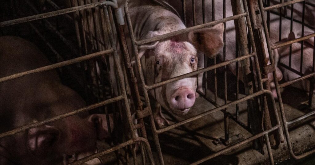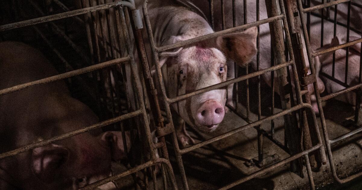 Share Twitter Facebook LinkedIn Email Corporate pork companies that run mega-farms where sows are often confined to tiny cages are going after a California law that bans sale of their meat in the Golden State.Read More