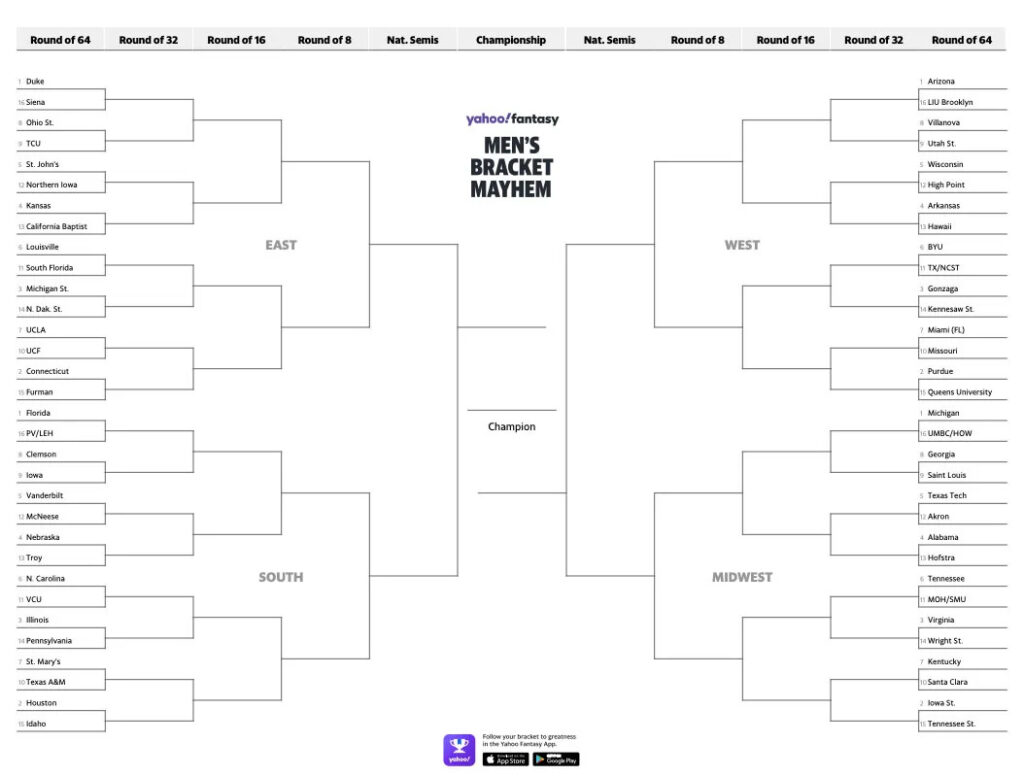 Share Twitter Facebook LinkedIn Email March Madness is finally here. Print off your NCAA tournament men’s and women’s bracket today.Read More