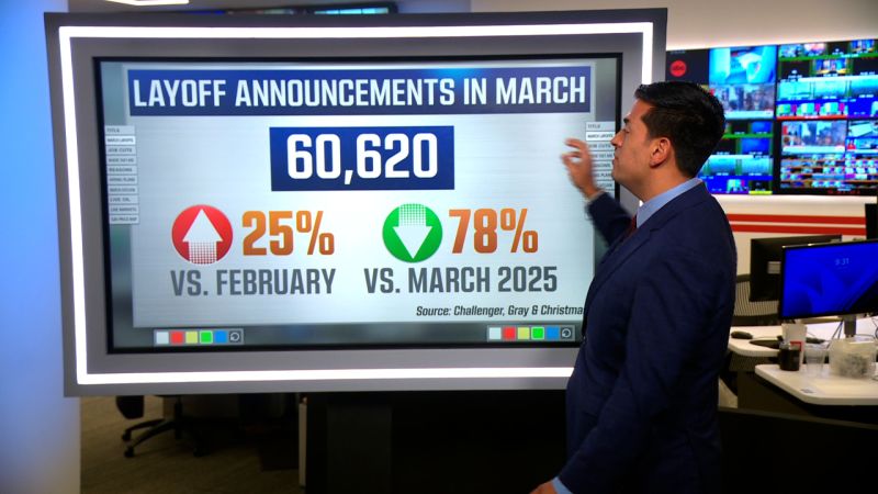Share Twitter Facebook LinkedIn Email AI was involved in a quarter of the roughly 60-thousand U.S. job losses in March, according to the Challenger report. CNN’s Matt Egan delves into the new numbers.Read More