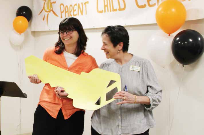 Erika Hoffman-Kiess, left, passes off a giant key to Lindsey Trombley, symbolizing a change in leadership as the campus goes from construction zone to child care center. (Herald / Isabel Dreher) Joyful smiles abounded Monday afternoon at the brand new Woodland campus outpost of the Orange County Parent Child Center. The new facility, located onRead More