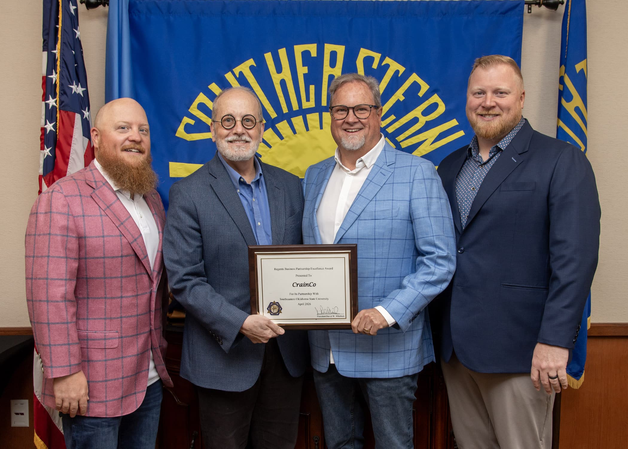 CrainCo honored with Regents Business Partnership Excellence Award for collaboration with Southeastern | Southeastern Oklahoma State University
