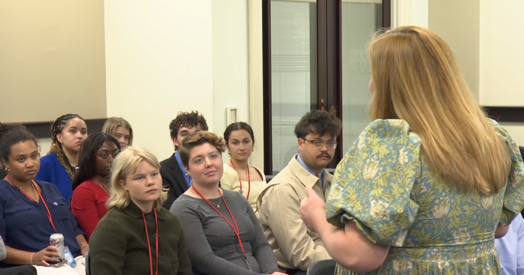 Share Twitter Facebook LinkedIn Email A record-setting 32 undergraduate students are interning in Frankfort, assisting with different tasks that help bills become Kentucky law.Read More