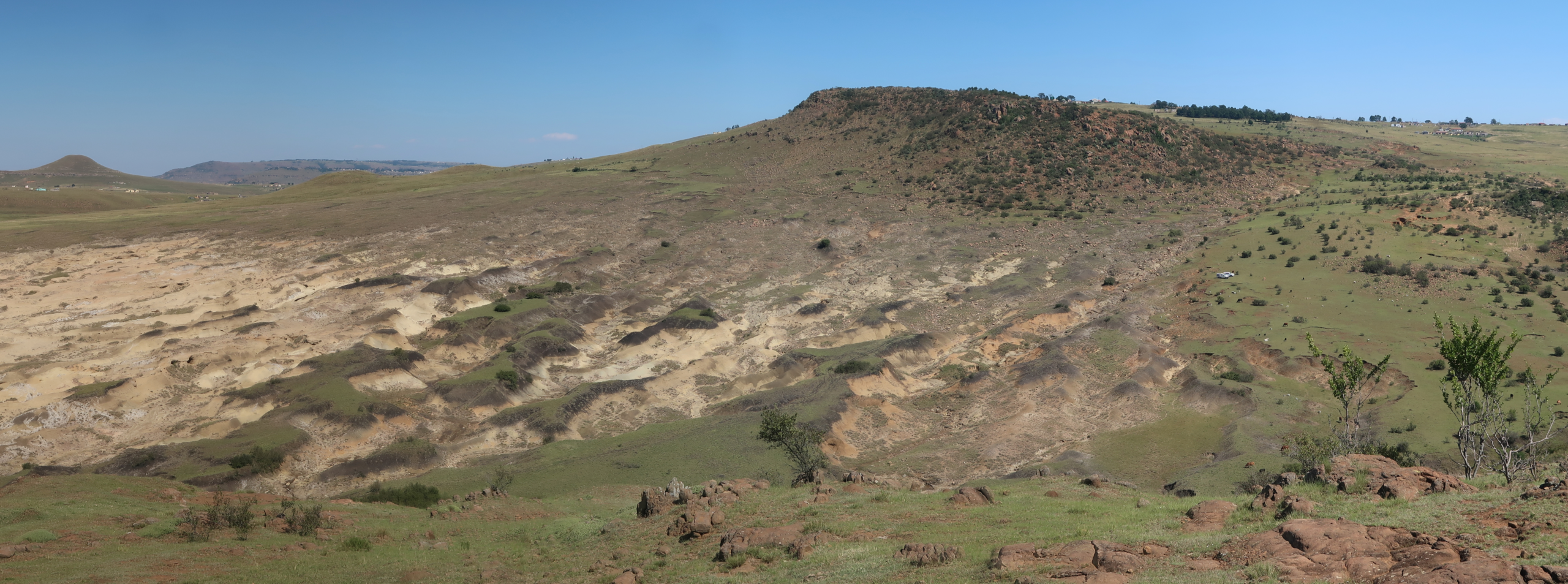 Share Twitter Facebook LinkedIn Email Photo: University of Tübingen / Christian Sommer Panoramic view of the Jojosi site. Clearly visible are gullies formed by erosionRead More