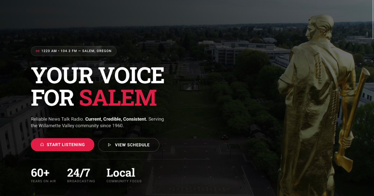 Share Twitter Facebook LinkedIn Email KSLM Radio – Reliable News Talk Radio serving Salem, Oregon and the Willamette Valley. Current, Credible, Consistent. Listen live at 1220 AM or 104.3 FM.Read More